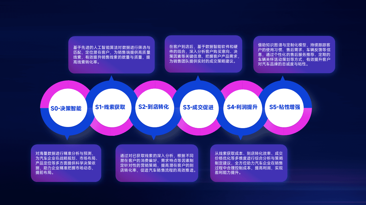 通过拓宽潜在客户来源、、、、优化线索分配并提高到店转化率,,以增强销售效率。。。同时,,,,利用线索数据不断优化分析模型,,,,有效提升转化率,,,扩大营销影响力。。。。